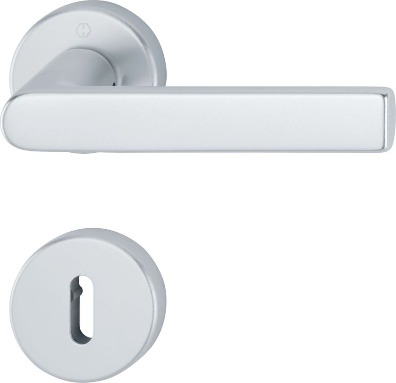 HOPPE komplett set för innerdörr, design Los Angeles med nyckelskylt. Aluminium silver F1. Rosetter med dubbelverkande returfjäder och Kvick-i-Sprint faststättning. Uppfyller krav på nickelavsättning - allergivänligt. Dörrtjocklek37-42 mm. 10 års funktionsgaranti.