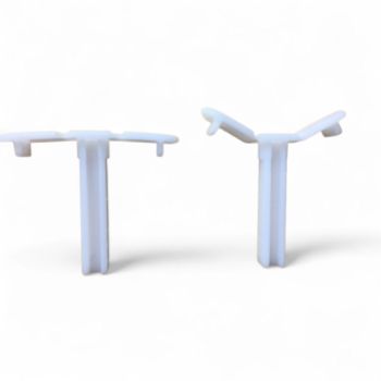 Transportsäkring i nylon. Monteras i spanjolett på fabrik, in i låshuset, med styrtapparna in i hål för handtagsstyrtappar, dimension 10 mm. "Vingarna" viks ut och används när man öppnar fönstret för montage.
